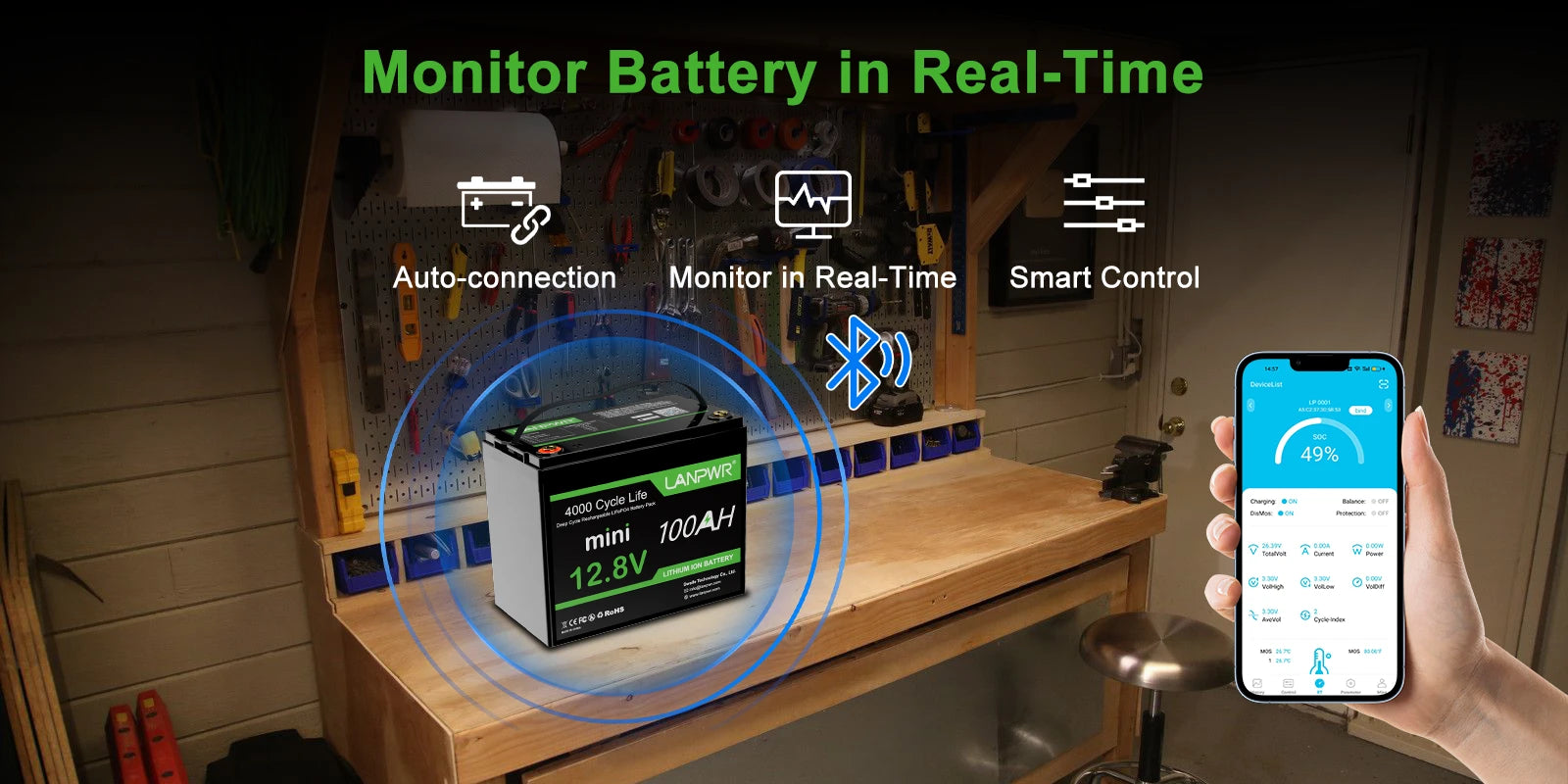 【Versatile and Expandable】LANPWR 12V 100Ah Mini Bluetooth LiFePO4 battery supports configurations up to 4S4P, enabling a robust 48V 400Ah system that delivers 20.48kWh energy and 20.48kW power. Ideal for RVs, solar installations, home energy storage, and off-grid applications, it offers versatile power solutions.
