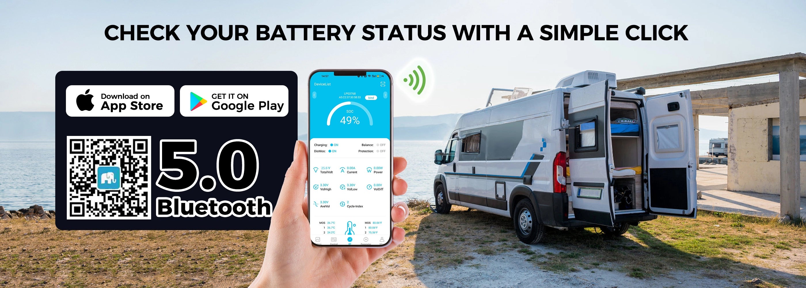 【Comprehensive Protection】With a 100A BMS, the Lanpwr battery provides full protection against overcharge, deep discharge, over-current, overheating, and short circuits, all while boasting an IP65 waterproof rating. Its low self-discharge rate ensures reliable performance in both indoor and outdoor settings.