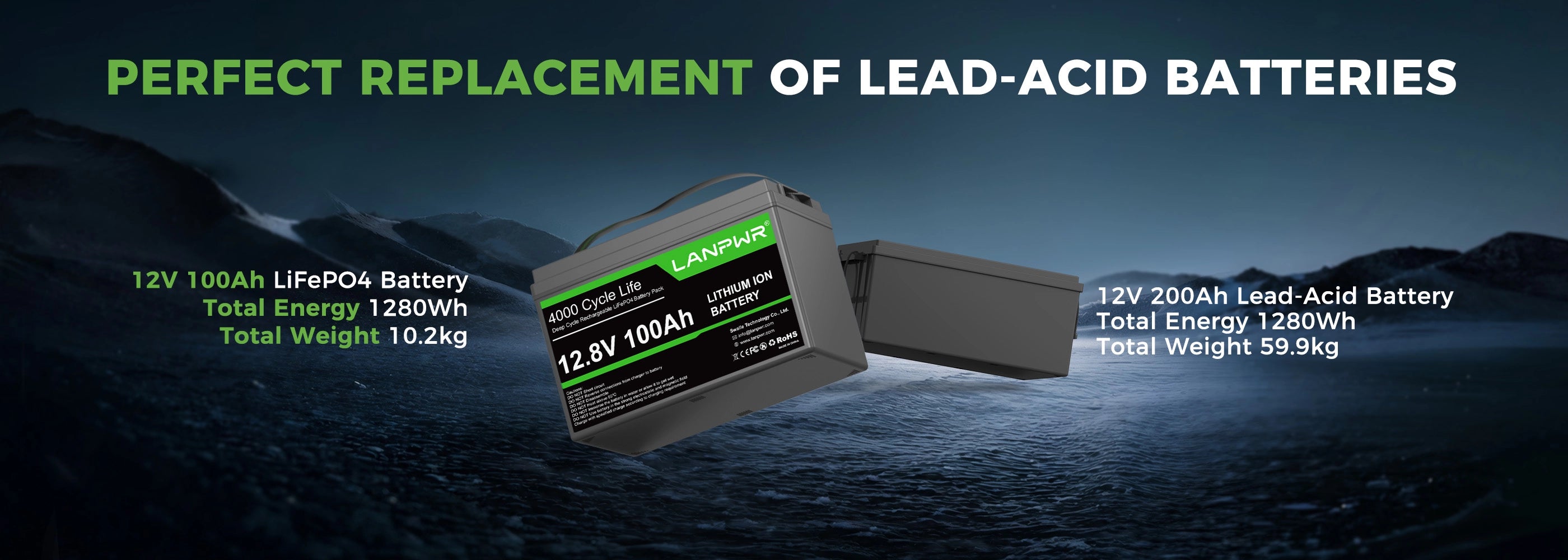 A: Being the utmost replacement for the group 31 batteries, LANPWR 12V 100Ah deep cycle LiFePO4 battery, weighing 24.25 lbs, is 1/5 the weight of a 12V 200Ah lead acid battery (about 130lbs) but equivalent in energy.