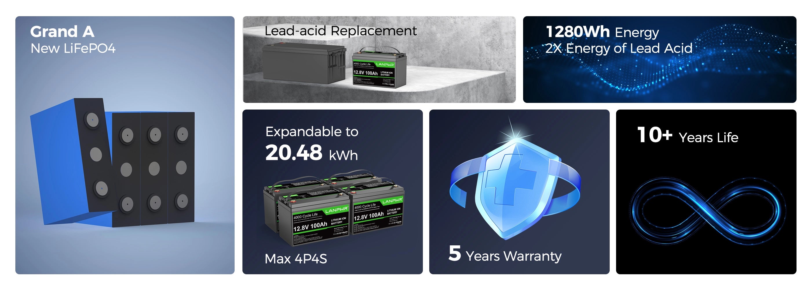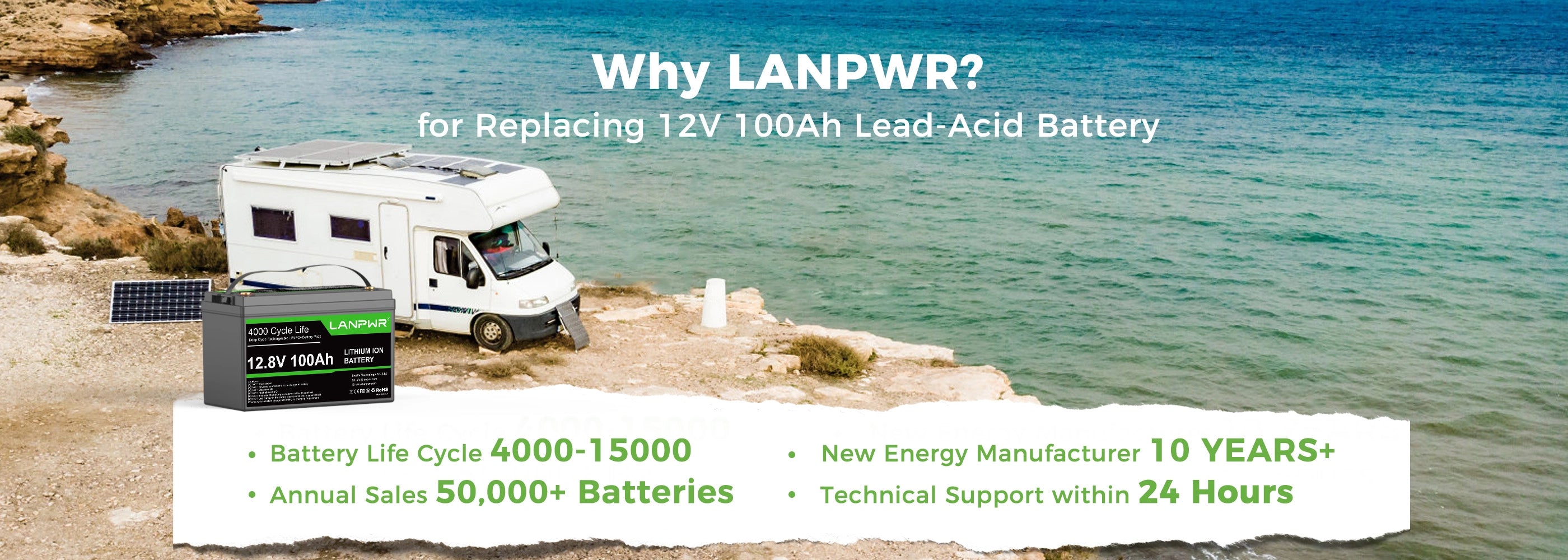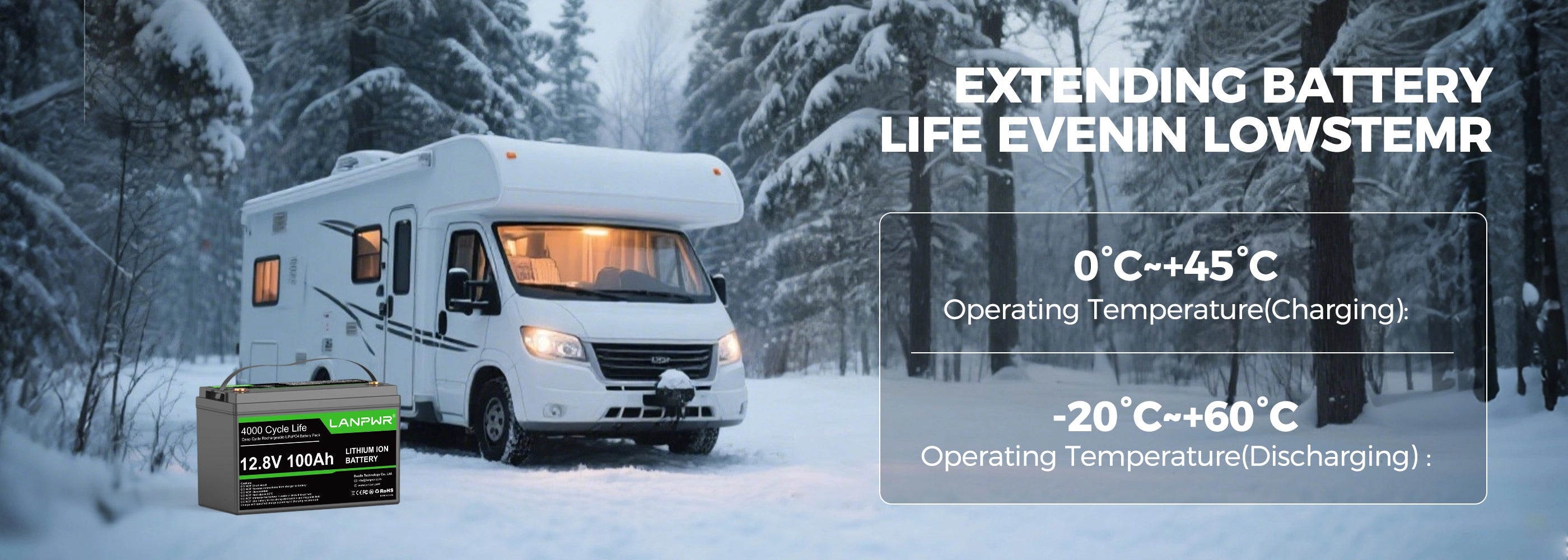 LANPWR 12V 100Ah LiFePO4 Lithium RV, Marine Battery with Low-Temp Protection