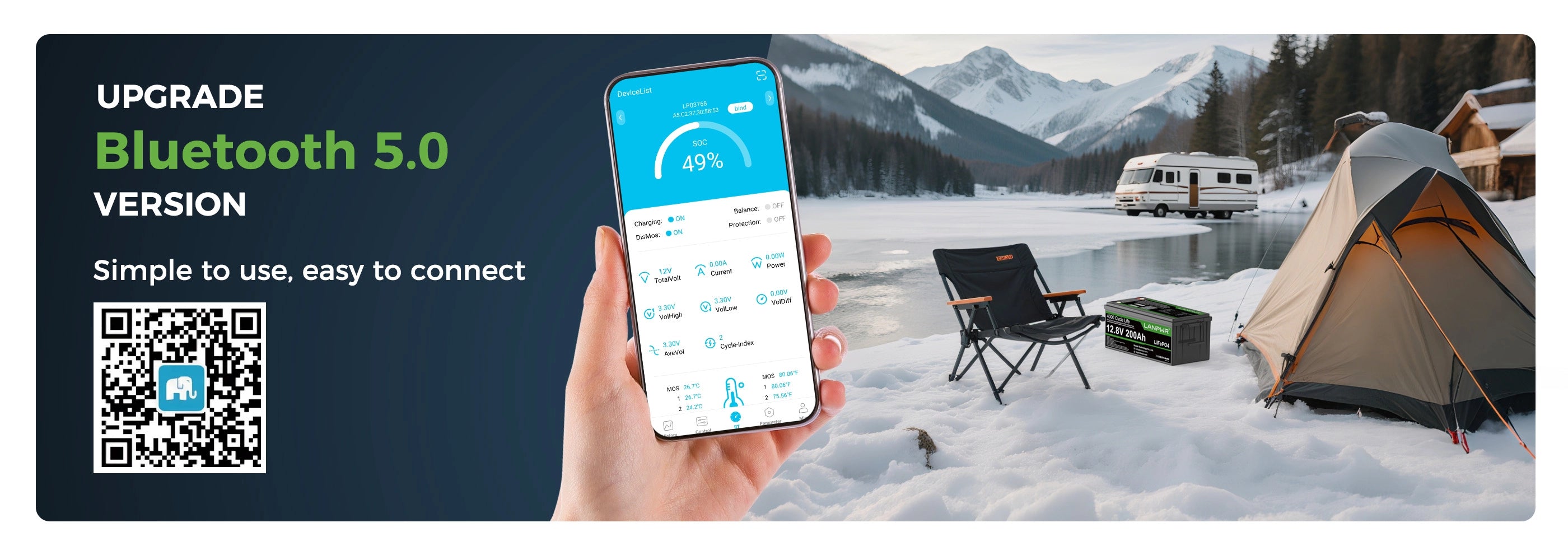 🔥Bluetooth Real-Time Monitoring: Meet new LANPWR 12V 200Ah Plus LiFePO4 battery featuring Bluetooth 5.0. Now you can check the status of battery voltage, current and capacity at any time from your phone. Also you'll be able to keep a close eye on the battery remaining working life. Stay confident and focused on every fishing trip without worrying about unexpected power loss
