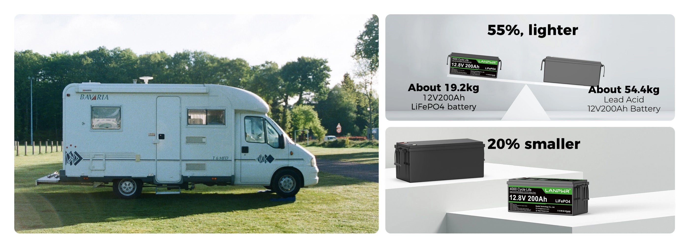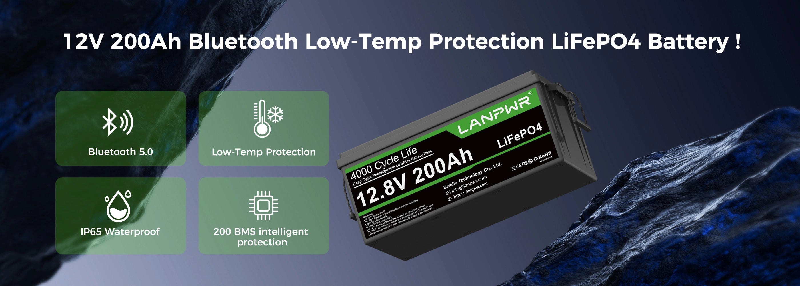 LANPWR 12V 200Ah Plus Bluetooth Lithium Battery for RV, Solar, Marine