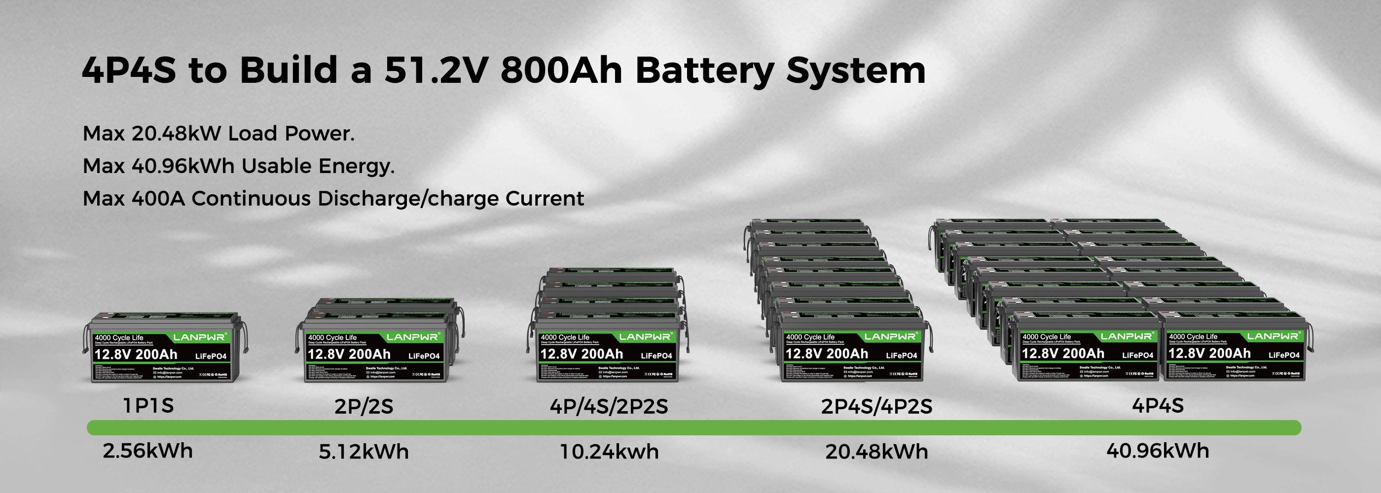 - Flexible in Series and Parallel (Up to 16 batteries Max 4S4P, up to 40.96kWh)