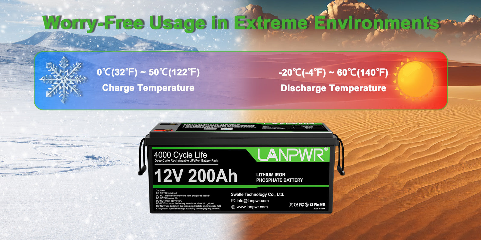 【Upgraded BMS】Lanpwr 12V 200Ah LiFePO4 can be charged at a current of up to 200A, doubling the previous capacity of 100A. This enhancement enables it to handle high output current loads, making it a dependable power source for all your energy needs.
