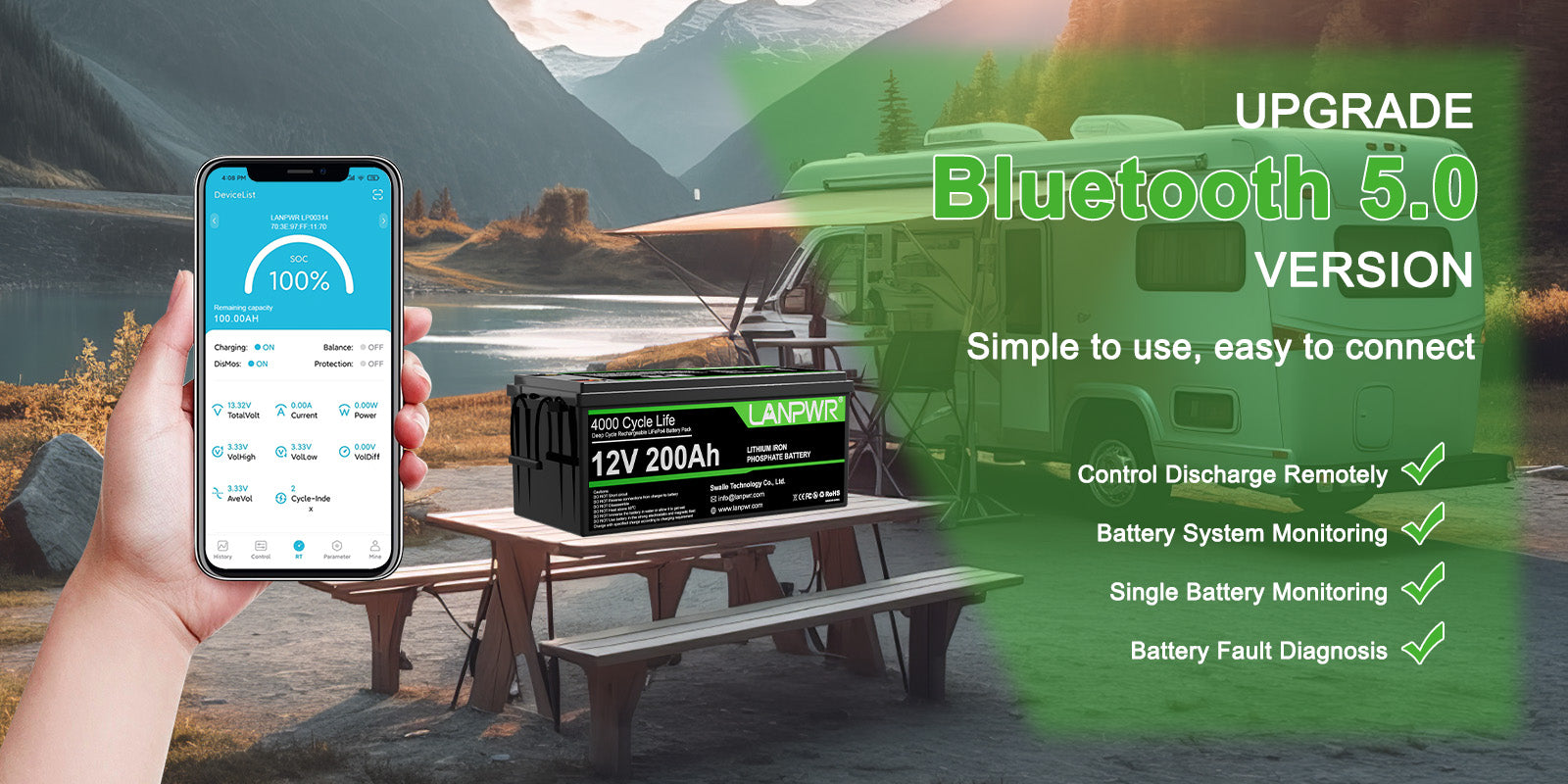 LANPWR 12V 200Ah Plus LiFePO4 Battery with Bluetooth 5.0, Maximum Load Power 2560W, 2560Wh Energy