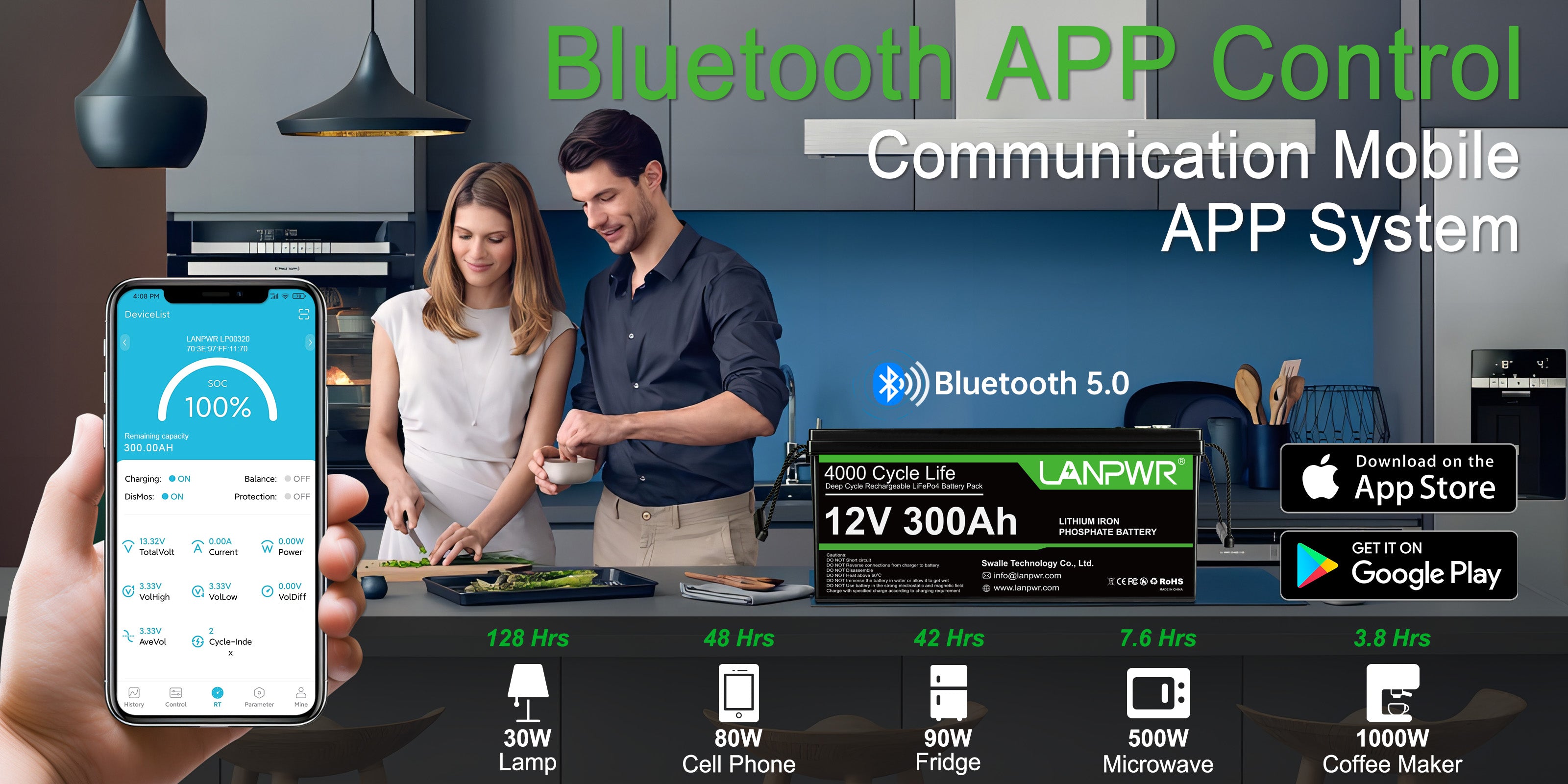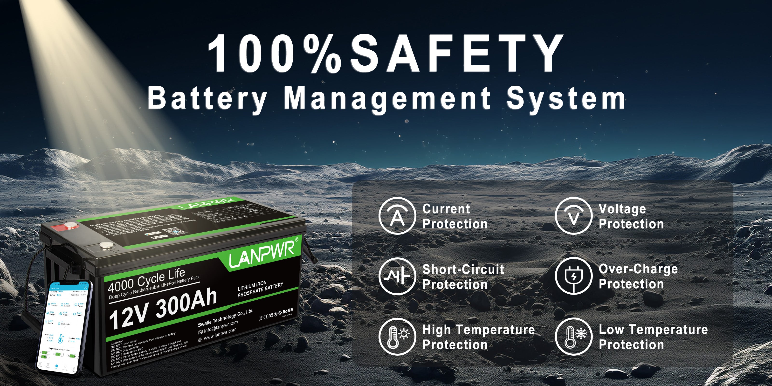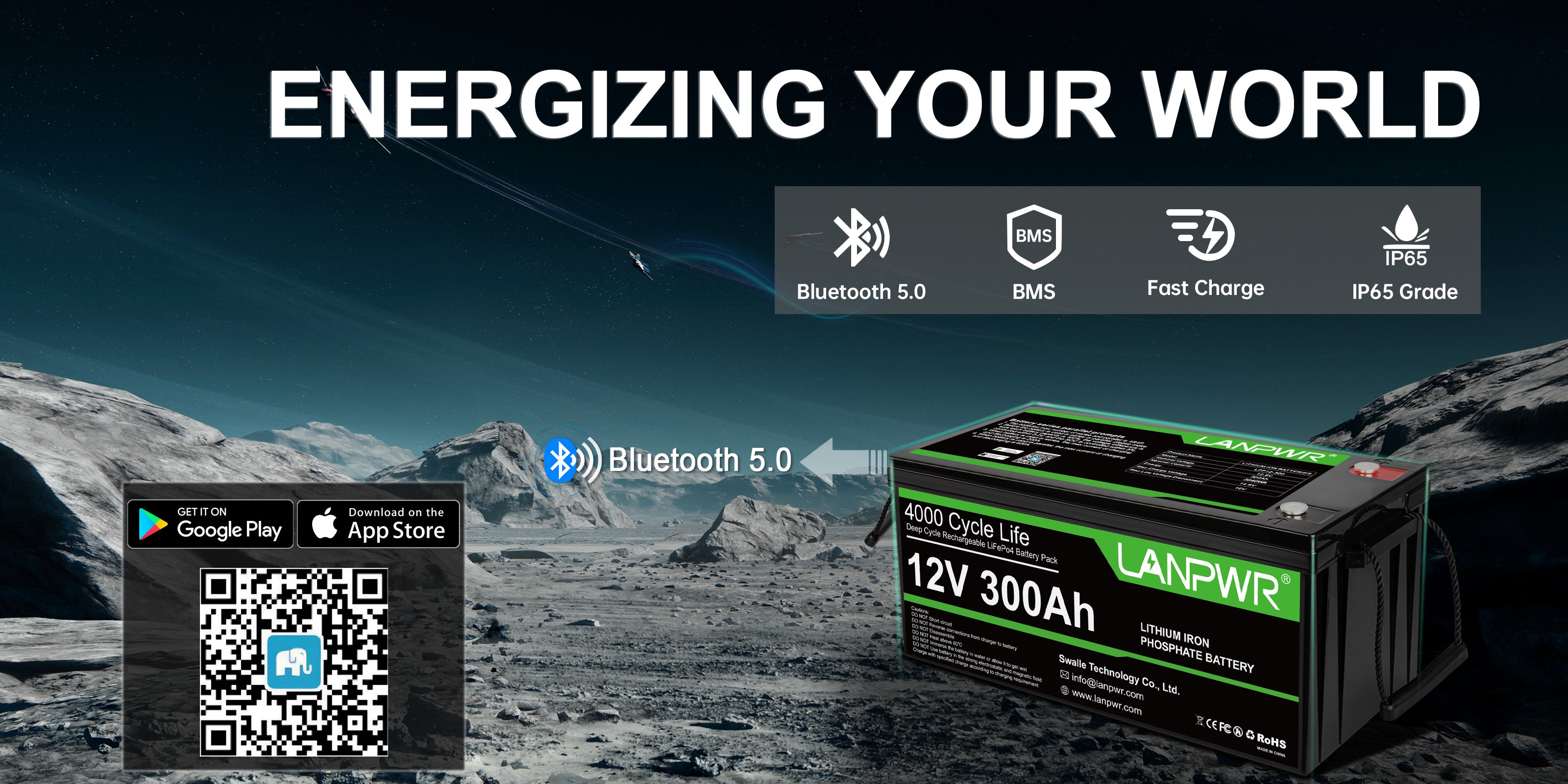 LANPWR 12V 300Ah LiFePO4 Battery with Bluetooth 5.0, Maximum Load Power 2560W, 3840Wh Energy