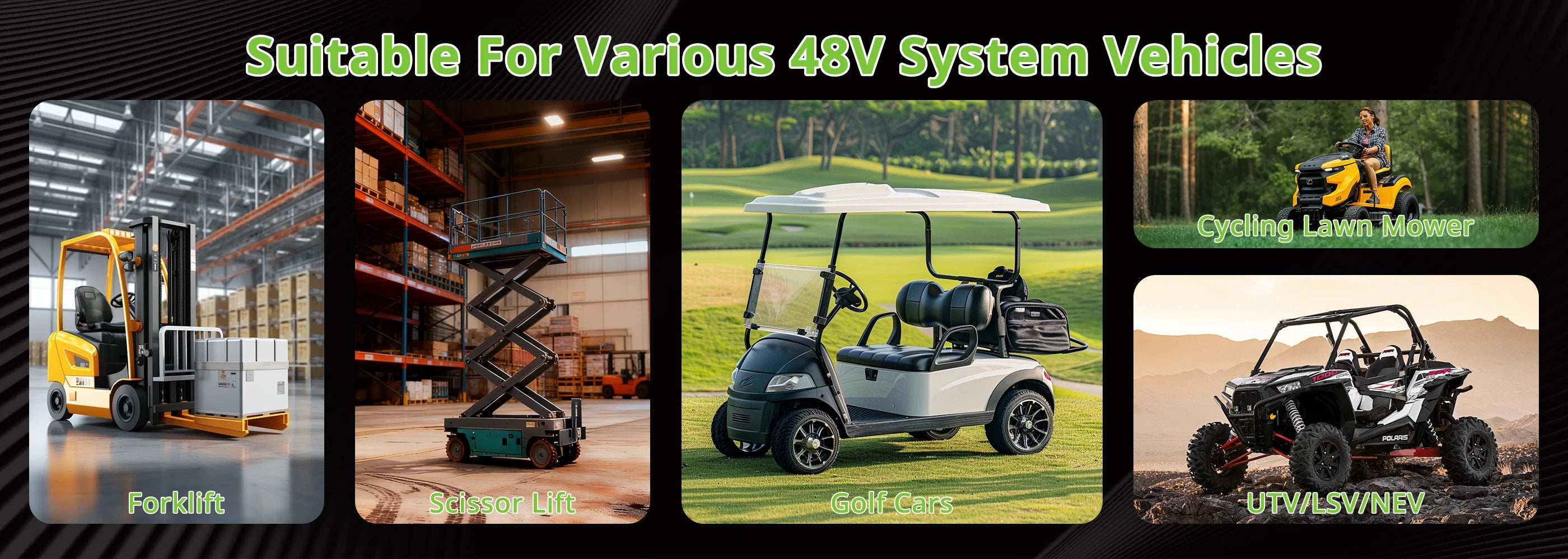- A Smarter Alternative to Lead-Acid: Enjoy quiet, clean, and efficient energy with up to 50 miles per charge. Experience smooth torque and consistent power across hills, sand, and rough terrain — a modern, low-maintenance solution for your golf cart.